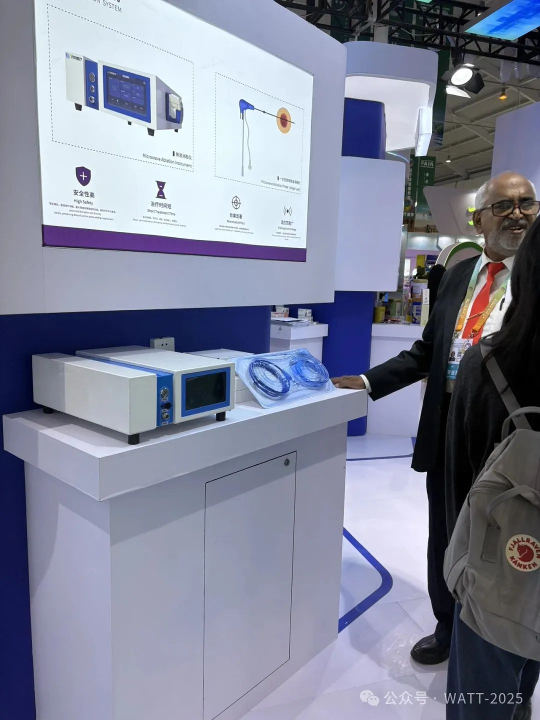 瓦特医疗带着自主研发设计消融系统亮相在本次博览会11号医疗体育康养馆,与来自国内及南亚参观者相遇。