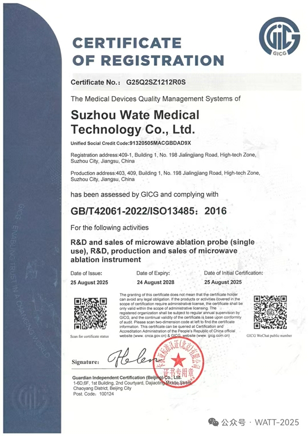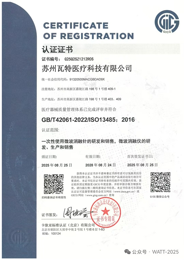 这不仅标志着瓦特医疗在医疗器械领域的质量管理体系达到国际标准,更是对公司持续创新、严格品控的充分肯定!